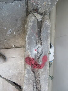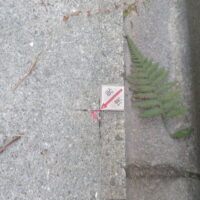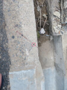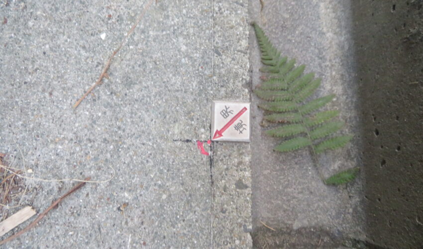 ペイントマーカーで印を付け、一時的な仮杭を打ちました。