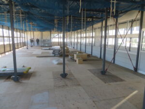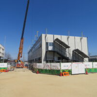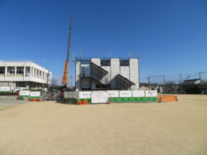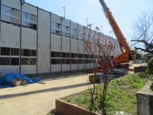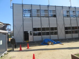 仮設校舎建築工事が進んでいます。