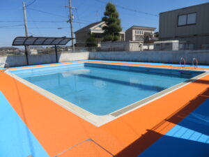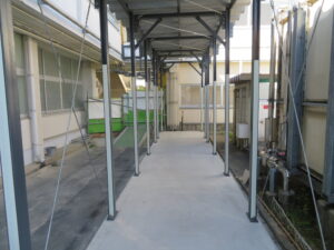 渡り廊下とプールの現況です。