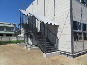 長寿命化改修工事という恵まれた環境下での、終わりが見えている一定期間の役割の仮設校舎建設、