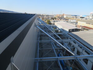 解体直前の足場に登って。